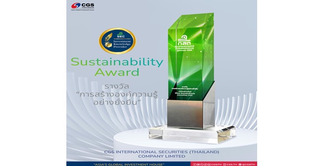รูป CGSI คว้ารางวัล Sustainability Award จากก.ล.ต.ต่อเนื่องเป็นปีที่ 2 ตอกย้ำบทบาทผู้ให้ความรู้ด้านการลงทุนอย่างยั่งยืน