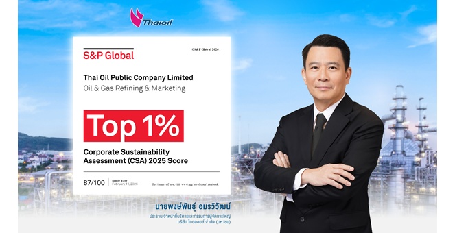 star_borderModal Upgrade Packageไทยออยล์ได้รับการประเมินด้านความยั่งยืนระดับสูงสุด “Top 1%” จาก S&P Global Corporate Sustainability Assessment (CSA) Score 2025 เป็นปีที่ 10 ในกลุ่มอุตสาหกรรมการตลาดและ การกลั่นน้ำมันและก๊าซ26 Feb 2026 09:42