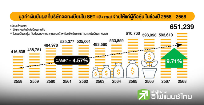 star_borderModal Upgrade Packageหุ้นไทยปันผลปี 68 ทะลุ 6.5 แสนลบ. ทำสถิติสูงสุดเป็นประวัติการณ์ พลังงาน-แบงก์-ไอที จ่ายสูงสุด15 ม.ค. 2569 15:39 น.