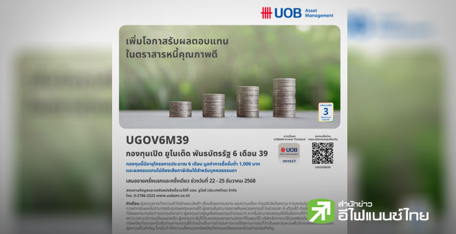 star_borderModal Upgrade Packageบลจ.ยูโอบี เสนอโอกาสลงทุนในพันธบัตรภาครัฐ กองทุน `UGOV6M39` IPO 22-25 ธ.ค.6822 Dec 2025 12:29