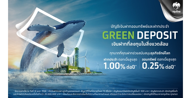star_borderModal Upgrade Packageกรุงไทยเดินหน้าธนาคารยั่งยืน เปิดตัวบัญชีเงินฝาก “GREEN DEPOSIT” ทุกบาทที่ฝาก สร้างพลังสนับสนุนธุรกิจรักษ์โลก22 Dec 2025 09:11
