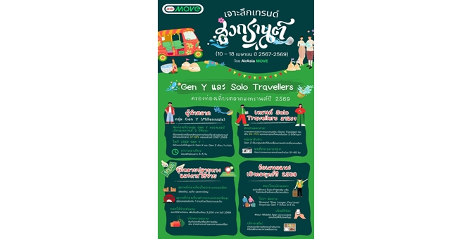 star_borderModal Upgrade PackageAirAsia MOVE เผยข้อมูลนักท่องเที่ยวช่วง `สงกรานต์ 3 ปีซ้อน` เจาะลึก Insight คนไทย Gen Y และ Solo Traveller แชมป์เที่ยว กิน-นอนยาวรับปี 256930 Mar 2026 12:42