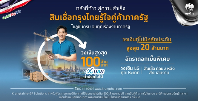 star_borderModal Upgrade Packageกรุงไทย เปิดตัวสินเชื่อกรุงไทยรู้ใจคู่ค้าภาครัฐ เสริมสภาพคล่อง SME รับนโยบาย Quick Big Win ของรัฐบาล15 ธ.ค. 2568 09:56 น.