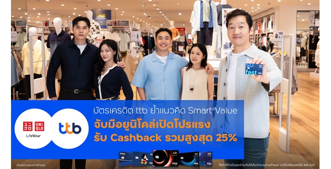 star_borderModal Upgrade Packageบัตรเครดิต ttb รุกหนักสร้าง Smart Value จับมือ “ยูนิโคล่” เปิดโปรแรง รับ Cashback รวมสูงสุด 25%9 Apr 2026 14:51