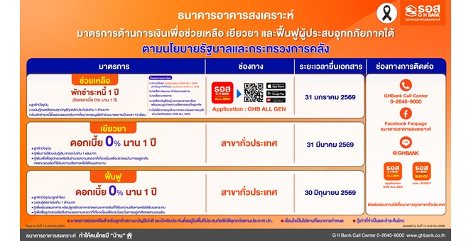 star_borderModal Upgrade Packageธอส. จัดทำ 3 มาตรการด้านการเงินช่วยเหลือ เยียวยา ฟื้นฟูผู้ประสบอุทกภัยภาคใต้ ตามนโยบายรัฐบาลและกระทรวงการคลัง15 Jan 2026 12:07
