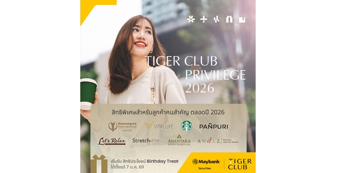 star_borderModal Upgrade Packageบล.เมย์แบงก์ เปิดตัว “TIGER CLUB Privilege 2026” ยกระดับการดูแลลูกค้ากลุ่มมั่งคั่ง ครบทุกมิติการลงทุน ไลฟ์สไตล์ และสุขภาพ12 Jan 2026 15:00