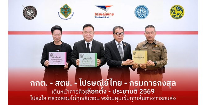star_borderModal Upgrade Package“กกต. - สตช. - ไปรษณีย์ไทย - กรมการกงสุล” เดินหน้าภารกิจเลือกตั้ง –ประชามติ 2569 ย้ำทุกกระบวนการโปร่งใส ตรวจสอบได้ทุกขั้นตอน พร้อมคุมเข้มทุกเส้นทางการขนส่ง9 Jan 2026 15:57
