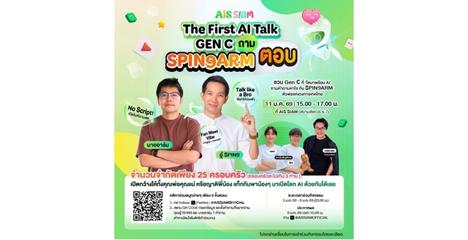 star_borderModal Upgrade PackageAIS SIAM ล็อกคิว 2 ตัวพ่อสายเทค “อู๋ Spin9–นายอาร์ม” เปิดเวทีให้เด็ก Gen C ถามสดอนาคต AI 11 ม.ค. นี้5 Jan 2026 14:04