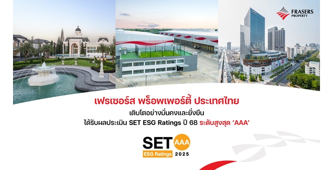 star_borderModal Upgrade Packageเฟรเซอร์ส พร็อพเพอร์ตี้ ประเทศไทย เติบโตอย่างมั่นคงและยั่งยืน ได้รับผลประเมิน SET ESG Ratings ปี 68 ระดับสูงสุด ‘AAA’26 Dec 2025 09:42