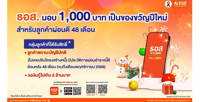 star_borderModal Upgrade Packageธอส. มอบของขวัญปีใหม่ตอบแทนลูกค้าผ่อนชำระดี 48 เดือน รับเงิน 1,000 บาท25 Dec 2025 11:42