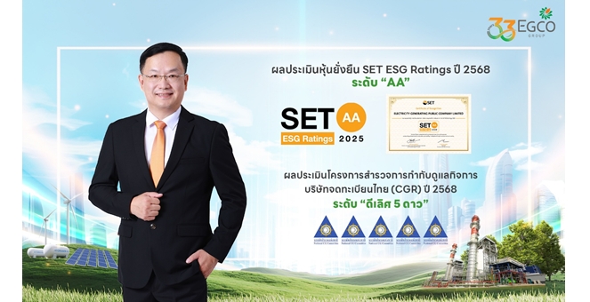 star_borderModal Upgrade PackageEGCO Group คว้าผลประเมินความยั่งยืน ปี 2568 SET ESG Ratings “ระดับ AA” และการกำกับดูแลกิจการ “ดีเลิศ 5 ดาว”23 Dec 2025 15:44
