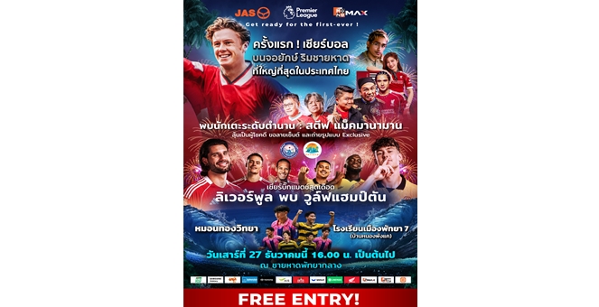 star_borderModal Upgrade Package“JAS-Monomax” ร่วมกระตุ้นเศรษฐกิจท่องเที่ยวช่วงไฮซีซั่น เปิดประสบการณ์ดูบอลพรีเมียร์ลีกริมทะเลครั้งแรกในไทย 27 ธ.ค. นี้22 Dec 2025 12:13