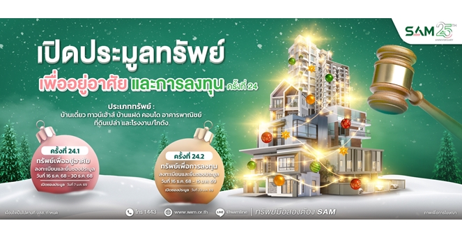 star_borderModal Upgrade PackageSAM ประเดิมปี 69 เปิดประมูลบ้านในโครงการจัดสรรชื่อดัง และทรัพย์เพื่อการลงทุน มูลค่ารวม 165 ลบ.22 Dec 2025 12:40