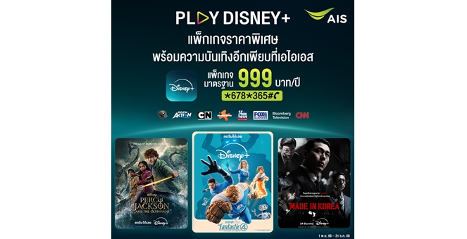 star_borderModal Upgrade PackageAIS PLAY เปิดดีลส่งท้ายปีสุดเร้าใจ! ต้อนรับหยุดยาวด้วยคอนเทนต์ระดับโลก บน “PLAY Disney+” ราคาสุดคุ้ม 999 บาทต่อปี ดูฟินได้ทั้งครอบครัวตลอดปี22 Dec 2025 13:19