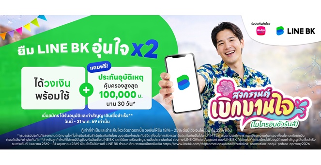 star_borderModal Upgrade Packageเมืองไทยประกันชีวิต ผนึกกำลัง LINE BK แจก ประกันอุบัติเหตุกลุ่ม เพิ่มความอุ่นใจรับเทศกาลสงกรานต์ แก่ลูกค้าสินเชื่อ LINE BK9 Apr 2026 16:43