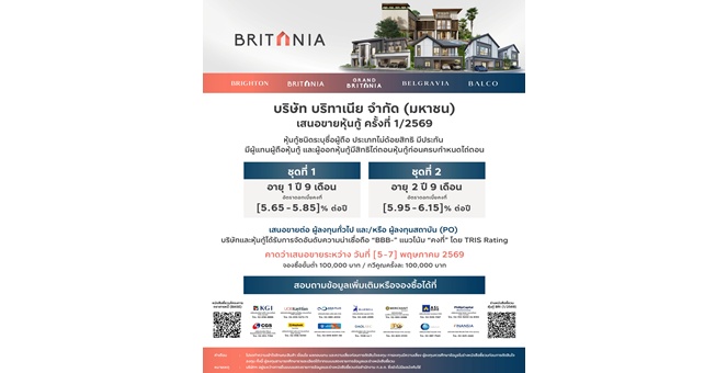 star_borderModal Upgrade PackageBRI เตรียมออกและเสนอขายหุ้นกู้ครั้งที่ 1/2569 จำนวน 2 ชุด ชูอัตราดอกเบี้ย [5.65 – 6.15]% ผ่าน 14 สถาบันการเงิน3 Apr 2026 12:00