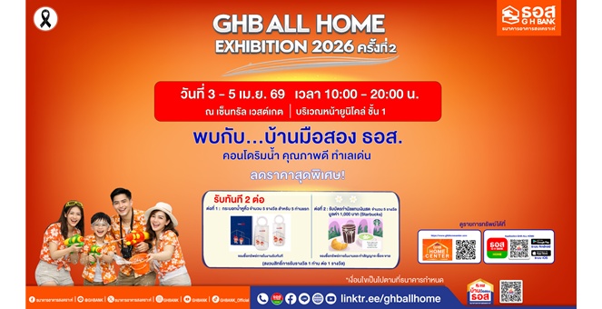 star_borderModal Upgrade Packageซื้อบ้านสุดคุ้ม! ธอส. ขนทรัพย์เด่น คอนโดริมน้ำ จัดเต็ม 3 – 5 เม.ย. นี้ ณ เซ็นทรัล เวสต์เกต กับมหกรรมบ้านมือสอง GHB ALL HOME EXHIBITION 2026 ครั้งที่ 22 Apr 2026 15:26