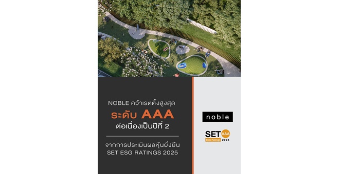 star_borderModal Upgrade Package“โนเบิล” คว้าเรตติ้งสูงสุด AAA ต่อเนื่องเป็นปีที่ 2 จาก SET ESG Ratings 202518 Dec 2025 15:08