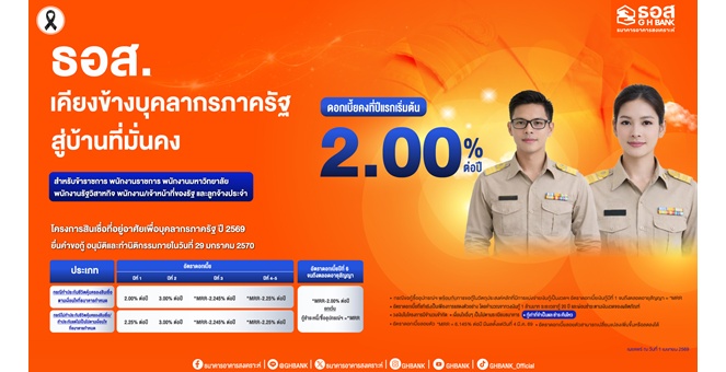 star_borderModal Upgrade Packageธอส. จัดสินเชื่อที่อยู่อาศัยเพื่อบุคลากรภาครัฐ ปี 2569 ดอกเบี้ยเริ่มต้น 2.00% ต่อปี1 Apr 2026 17:47