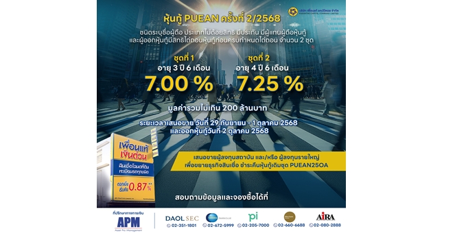 star_borderModal Upgrade PackageGossip : กระแสดีเกินคาด PUEAN ปล่อยหุ้นกู้คุณภาพ 2 ชุด นักลงทุนแห่งจองคึกคัก30 Sept 2025 10:21
