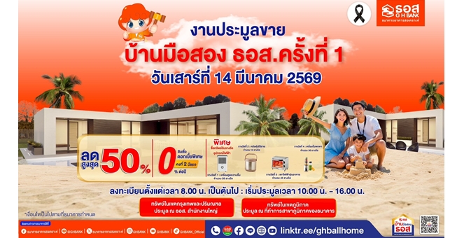star_borderModal Upgrade Package14 มี.ค. นี้ ห้ามพลาด! โอกาสทองของคนอยากมีบ้าน ธอส. จัดประมูลบ้านมือสอง ครั้งที่ 1 ปี 2569 ลดราคาสูงสุด 50% พร้อมโปรสินเชื่อบ้านดอกเบี้ย 0% ต่อปี10 Mar 2026 10:41