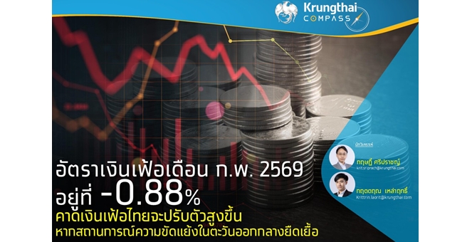 star_borderModal Upgrade PackageKrungthai COMPASS เผยอัตราเงินเฟ้อเดือน ก.พ. 69 อยู่ที่ -0.88% คาดเงินเฟ้อไทยจะปรับตัวสูงขึ้น หากสถานการณ์ความขัดแย้งในตะวันออกกลางยืดเยื้อ10 Mar 2026 12:59