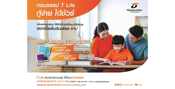 star_borderModal Upgrade Packageที ไลฟ์ ประกันชีวิต เปิดแคมเปญ `กรมธรรม์ T Life กู้ง่าย ได้ชัวร์`แปลงกรมธรรม์เป็นเงินสด เสริมสภาพคล่องทางการเงินให้ลูกค้า ดอกเบี้ยเริ่มต้น 5% ต่อปี พร้อมรับบัตรกำนัลโลตัส1 Apr 2025 10:57