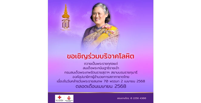star_borderModal Upgrade Package70 พรรษา 70 ล้านซีซี ร่วมบริจาคโลหิตเฉลิมพระเกียรติ กรมสมเด็จพระเทพรัตนราชสุดาฯ องค์อุปนายิกาผู้อำนวยการสภากาชาดไทย เนื่องในโอกาสวันคล้ายวันพระราชสมภพ31 Mar 2025 15:09