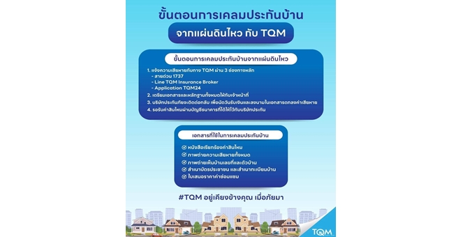 star_borderModal Upgrade PackageTQM ห่วงใยลูกค้าผู้ได้รับผลกระทบจากเหตุการณ์แผ่นดินไหว พร้อมดำเนินมาตรการดูแลและอำนวยความสะดวกด้านการเคลมประกันอย่างเต็มที่31 Mar 2025 08:43