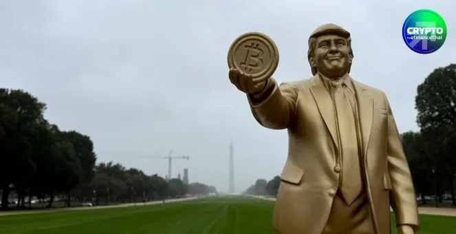 Memecoiners วางรูปปั้น “ทรัมป์ถือ Bitcoin” หน้ารัฐสภาสหรัฐฯ เพื่อสดุดีบทบาทสนับสนุนคริปโต พร้อมโปรโมทเหรียญมีมผ่าน Pump.fun