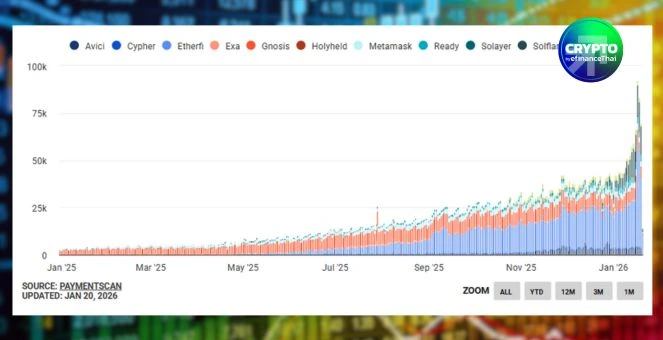 star_borderModal Upgrade Packageรูดปรื๊ด! บัตรคริปโทฮิต ยอดพุ่ง 22 เท่า คนเริ่มใช้จ่ายจริง ไม่ต้องเสียเวลาแลกบัตรชำระเงินคริปโทฯ โตแรง ธุรกรรมรายวันพุ่ง 22 เท่า แตะเกือบ 60,000 รายการ สะท้อนการใช้คริปโทฯ ในชีวิตจริงที่ชัดเจนขึ้น21 ม.ค. 2569 10:42 น.