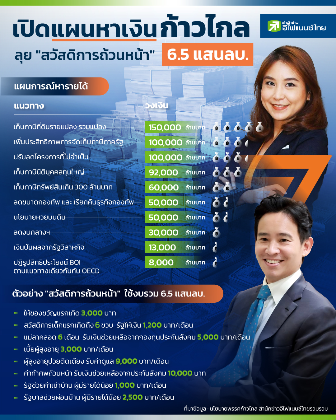 เปิดแผนหาเงิน "ก้าวไกล" ลุย "สวัสดิการถ้วนหน้า" 6.5 แสนลบ.