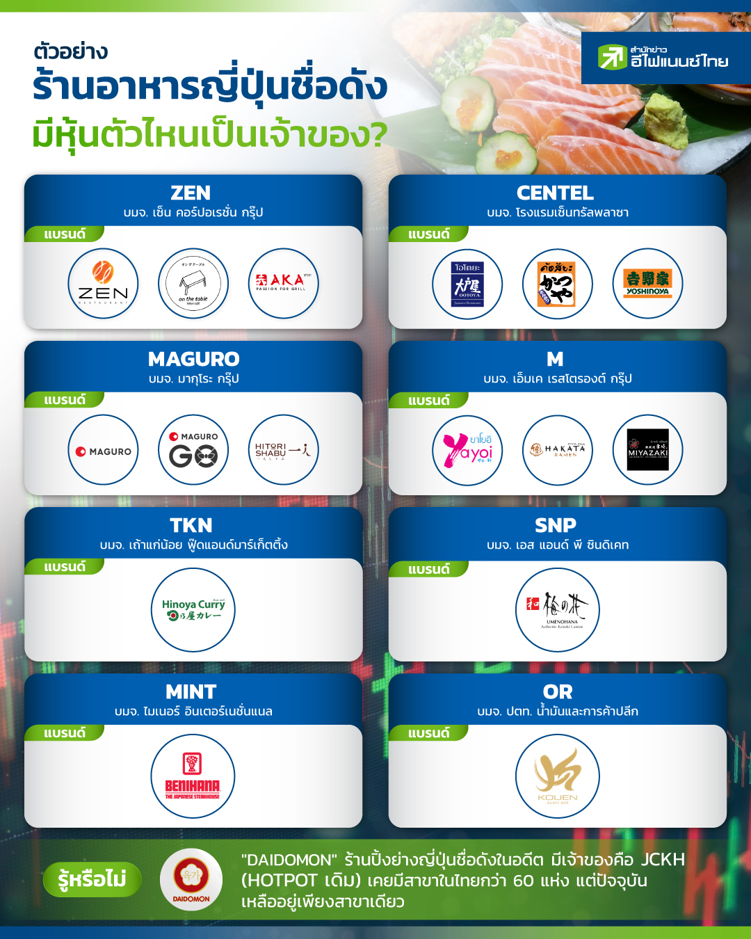 ตัวอย่าง ร้านอาหารญี่ปุ่นชื่อดัง มีหุ้นตัวไหนเป็นเจ้าของ?