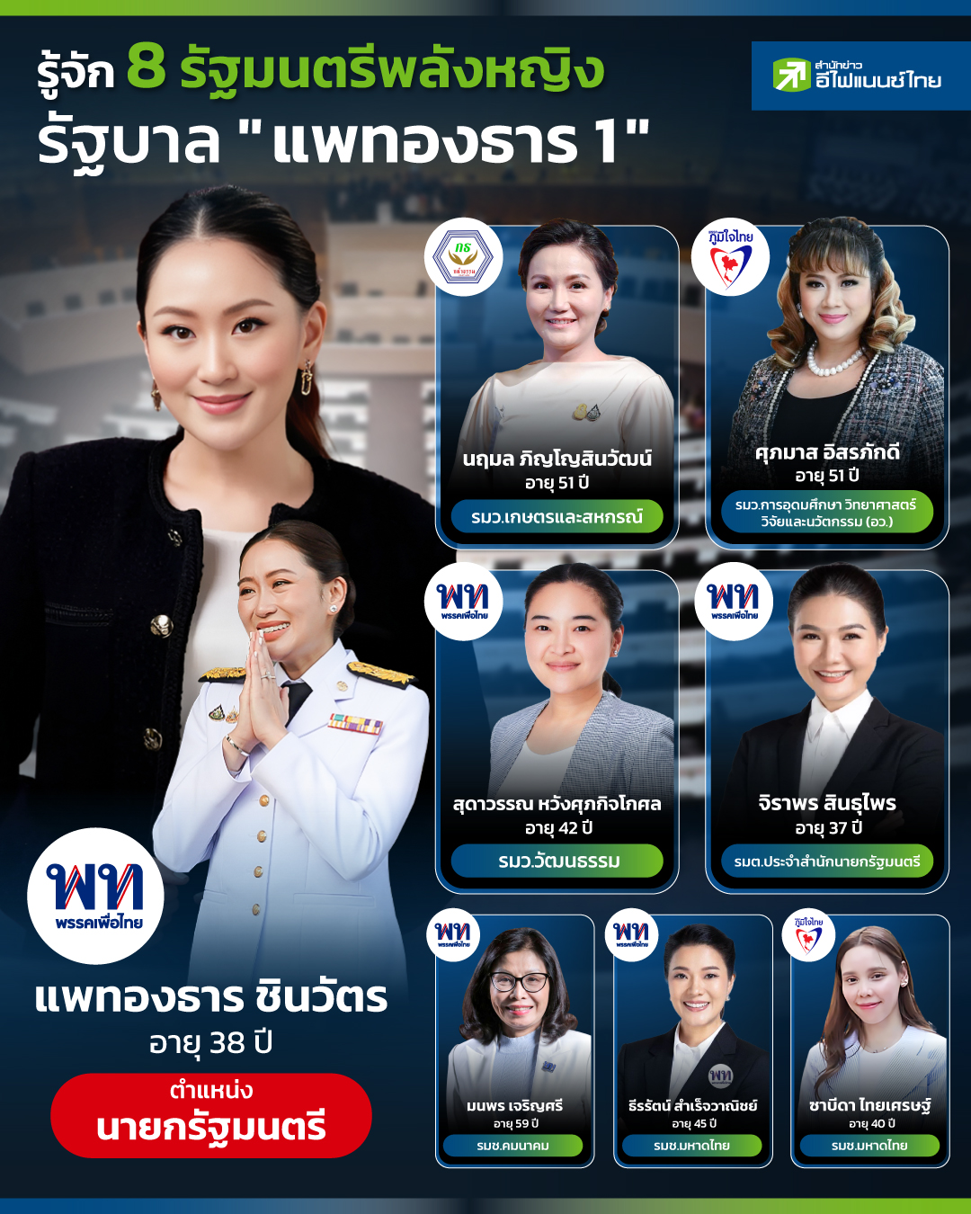 รู้จัก 8 รัฐมนตรีพลังหญิง รัฐบาล "แพทองธาร 1"