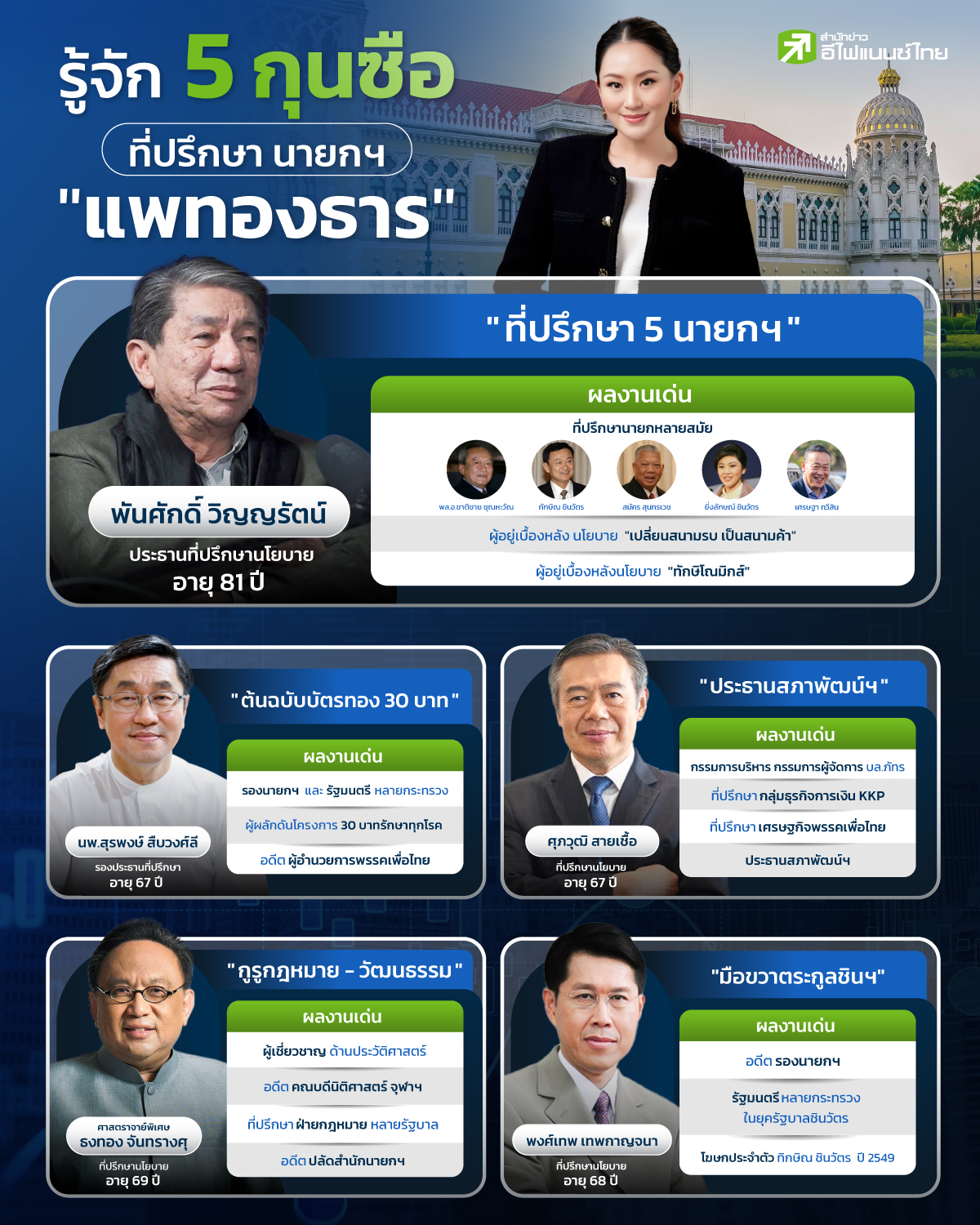 รู้จัก 5 กุนซือ ที่ปรึกษา นายกฯ "แพทองธาร"