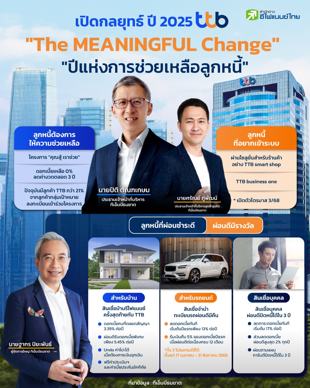 เปิดกลยุทธ์ ปี 2025 TTB "The MEANINGFUL Change" ปีแห่งการช่วยเหลือลูกหนี้