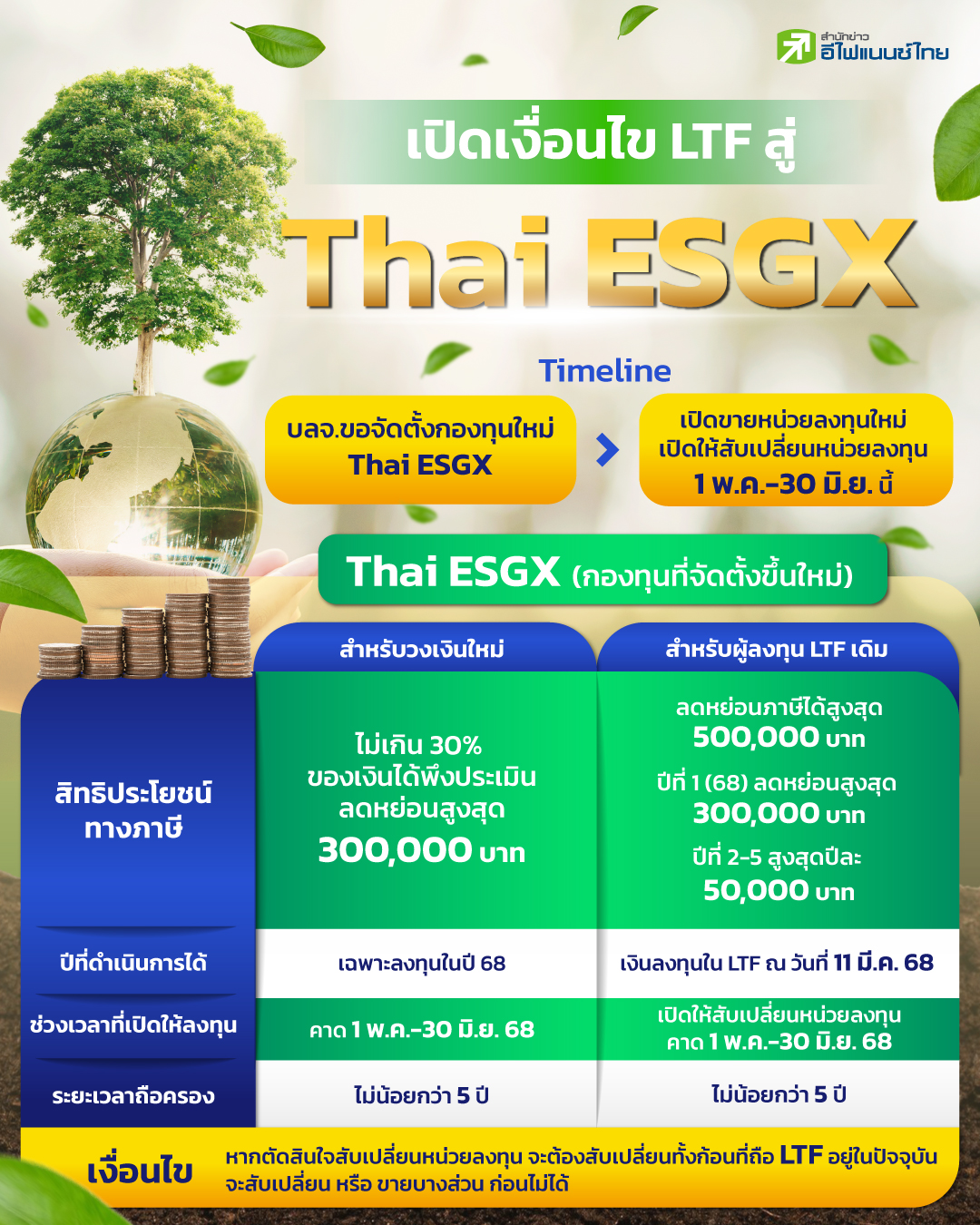 ในช่วงที่ผ่านมาพบว่า มีแรงเทขายจากกองทุนรวมหุ้นระยะยาว (LTF) ที่ครบกำหนดออกมาอย่างต่อเนื่องตั้งแต่ช่วงต้นปีที่ผ่านมา และเพื่อชะลอแรงขายดังกล่าว กระทรวงการคลัง และหน่วยงานที่เกี่ยวข้องจึงเร่งออกมาตรการหยุดการขาย LTF เหล่านี้ โดยการดำเนินการจัดตั้งกองทุน รวมไทยเพื่อความยั่งยืนแบบพิเศษ (Thai ESGX) และสับเปลี่ยนหน่วยลงทุน LTF เป็นหน่วยลงทุนในกองทุน Thai ESGX สำหรับแรงจูงใจในการกระตุ้นให้นักลงทุนสับเปลี่ยนหน่วยลงทุน นั่นก็คือ การให้สิทธิประโยชน์ทางภาษีนั้นเอง โดยมาตรการภาษีเพื่อรักษาเสถียรภาพของตลาดทุนไทยและส่งเสริมการลงทุนเพื่อความยั่งยืนนั้น