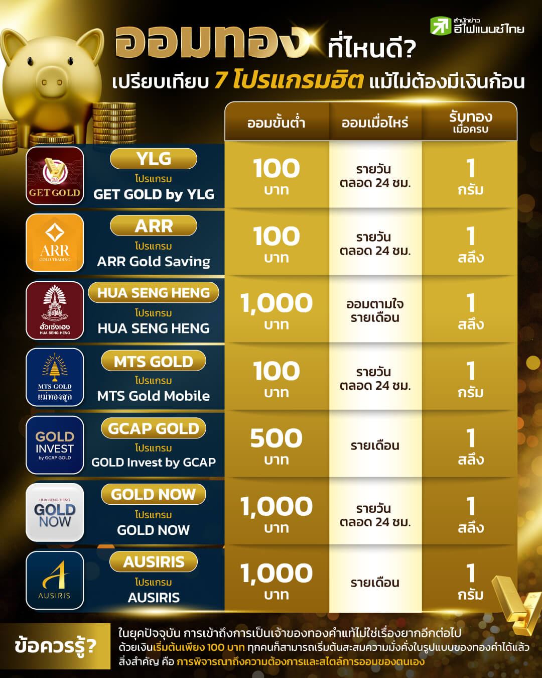 ออมทองที่ไหนดี? เปรียบเทียบ 7 โปรแกรมฮิต แม้ไม่ต้องมีเงินก้อน