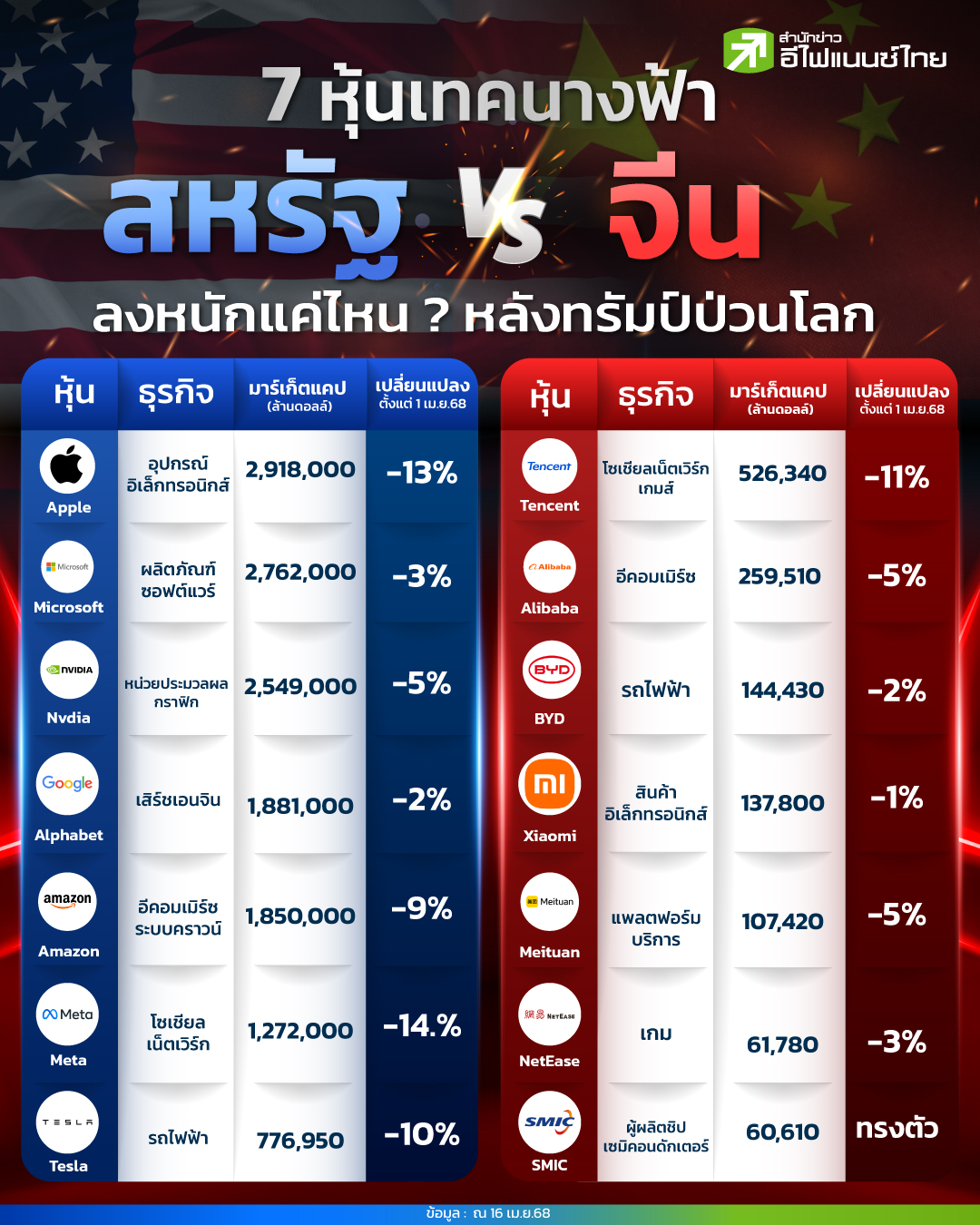 นับตั้งแต่วันที่ 2 เม.ย. 68 หลังจากที่ประธานาธิบดีโดนัลด์ ทรัมป์ ประกาศกำหนดเก็บภาษีตอบโต้ (Reciprocal Tariff) กับหลายประเทศที่สหรัฐฯ ขาดดุลการค้ามากที่สุด รวมถึงภาษีพื้นฐาน (Baseline Tariff) สำหรับสินค้าจากทุกประเทศในอัตรา 10% ส่งผลให้ตลาดการลงทุนทั่วโลกปรับตัวลดลงรับข่าวทันที โดยเฉพาะการขึ้นภาษีในครั้งนี้ประเทศที่ได้รับผลกระทบมากสุดคงหนีไม่พ้นคู่แข่งทางการค้ารายสำคัญอย่าง "จีน" โดยสหรัฐฯ ประกาศปรับขึ้นอัตราภาษีจีนจากเดิมก่อนวันที่ 2 เม.ย. 68 อยู่ที่ 20% และหลังจากนั้นเริ่มประกาศเก็บภาษีเพิ่มขึ้นต่อเนื่องเป็น