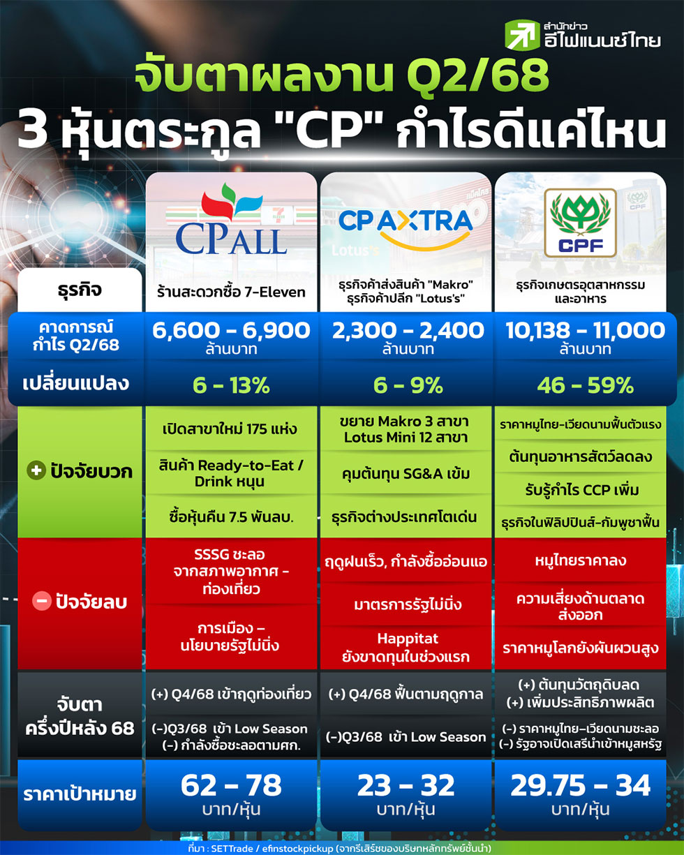 จับตา 3 หุ้นตระกูล “CP” ผลงาน Q2/68 กำไรดีแค่ไหน