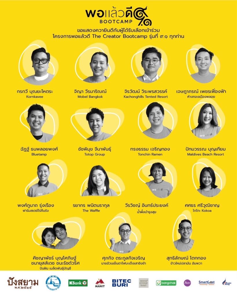 15 นักธุรกิจ น้อมนำศาสตร์พระราชา บันดาลใจต่อยอดสู่คุณค่าธุรกิจไลฟ์สไตล์ยั่งยืน เกื้อกูลสังคม ผนึกหอการค้าไทย จัดโรดโชว์ และตลาดนัด พอแล้วดี The Creator ”ดีพอและพอดี” สู่ระดับโลก นักธุรกิจรุ่นใหม่น้อมนำ “ศาสตร์พระราชา” สู่แรงบัลดาลใจแบรนด์ดีสร้างสังคมยั่งยืน 15 นักธุรกิจ น้อมนำศาสตร์พระราชา บันดาลใจต่อยอดสู่คุณค่าธุรกิจไลฟ์สไตล์ยั่งยืน เกื้อกูลสังคม ผนึกหอการค้าไทย จัดโรดโชว์ และตลาดนัด พอแล้วดี The Creator ”ดีพอและพอดี” สู่ระดับโลก พอแล้วดี The Creator โครงการที่พัฒนานักธุรกิจรุ่นใหม่ ภายใต้ “ความพอดีที่ดีพอ”