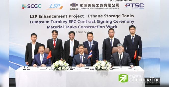 กรุงเทพฯ – 27 กุมภาพันธ์ 2568 เอสซีจี เคมิคอลส์ หรือ SCGC เผยความคืบหน้าโครงการเพิ่มวัตถุดิบก๊าซอีเทนที่โรงงาน LSP หรือ ลองเซิน ปิโตรเคมิคอลส์ ประเทศเวียดนาม (โครงการ LSPE) ล่าสุด เดินหน้าสำเร็จอีกขั้น เตรียมพร้อมสร้างถังเก็บก๊าซอีเทน โดยได้ลงนามในสัญญาออกแบบ จัดหา และก่อสร้าง (EPC contract) ถังเก็บก๊าซอีเทนเป็นที่เรียบร้อย คาดว่าการก่อสร้างจะแล้วเสร็จในปลายปี 2570 โดยโรงงาน LSP ถือเป็นแห่งแรกในอาเซียนที่นำก๊าซอีเทนจากสหรัฐอเมริกามาใช้เป็นวัตถุดิบ ซึ่งจะช่วยลดต้นทุนอย่างมีนัยสำคัญกว่า 30% เมื่อเทียบกับราคาแนฟทาในปัจจุบัน