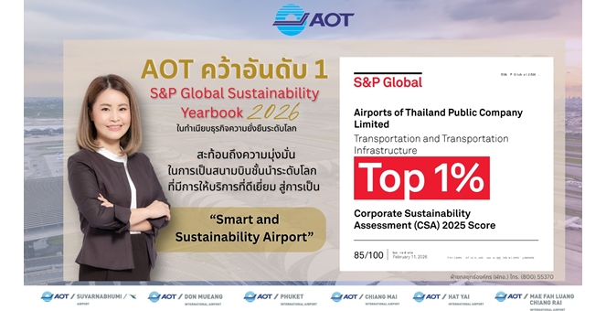 star_borderModal Upgrade PackageAOT ได้รับการประเมินระดับสูงสุด Top 1% ใน S&P Global Sustainability Yearbook 202624 ก.พ. 2569 15:36 น.