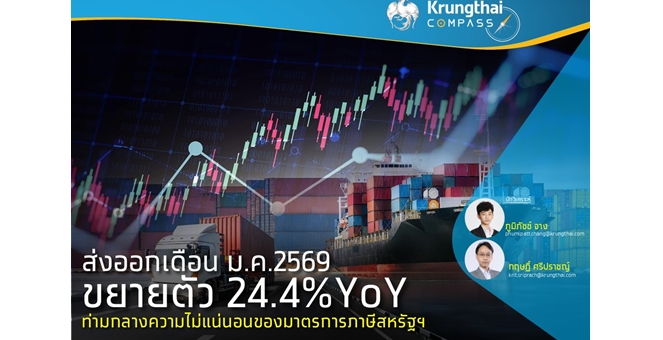 star_borderModal Upgrade PackageKrungthai Compass เผยส่งออกเดือน ม.ค. 2569ขยายตัว 24.4%YoY ท่ามกลางความไม่แน่นอนของมาตรการภาษีสหรัฐฯ24 ก.พ. 2569 15:44 น.
