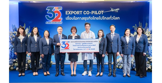 • EXIM BANK ฉลองครบรอบ 32 ปี ร่วมกับหน่วยงานพันธมิตรและลูกค้า บริจาคเงินสมทบทุนมูลนิธิรามาธิบดี โครงการอาคารโรงพยาบาลรามาธิบดีและย่านนวัตกรรมโยธี