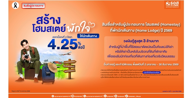 star_borderModal Upgrade Packageธอส. หนุนผู้ประกอบการรายย่อยปรับปรุงที่พักผลักดันเม็ดเงินท่องเที่ยวลงสู่ชุมชน ผ่านสินเชื่อ Homestay – Home Lodge ปี 2569 อัตราดอกเบี้ยคงที่ 2 ปีแรก 4.25 % ต่อปี11 Feb 2026 10:59