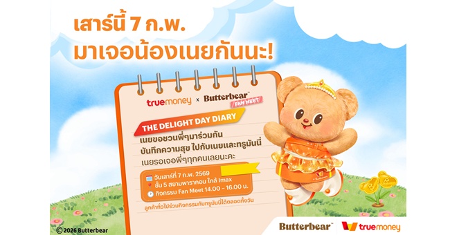• ทรูมันนี่ ชวนแฟนคลับร่วมโมเมนต์สุดพิเศษกับ “น้องเนย” ในงาน “The Delight Day Diary” วันเสาร์ที่ 7 ก.พ. นี้ ที่สยามพารากอน