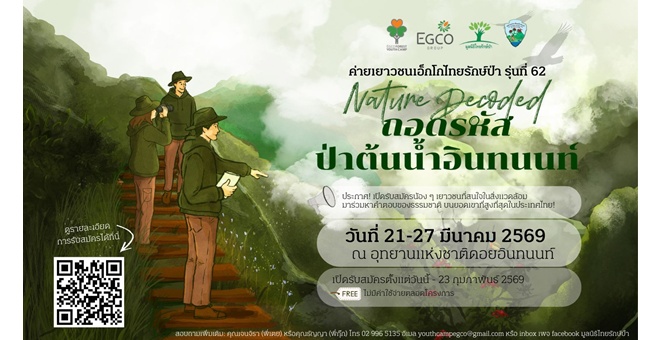 • EGCO Group รับสมัครเยาวชนหัวใจกรีน ร่วมถอดรหัสป่าต้นน้ำอินทนนท์ กับ “ค่ายเยาวชนเอ็กโกไทยรักษ์ป่า” รุ่นที่ 62