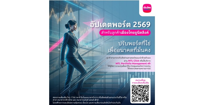 star_borderModal Upgrade Package“เมืองไทยประกันชีวิต” ปรับพอร์ตแนะนำยูนิตลิงค์ ต้อนรับปีใหม่ 2569 เพื่อสร้างโอกาสรับผลตอบแทนให้ “เฮง” ตลอดปีม้า4 ก.พ. 2569 12:04 น.