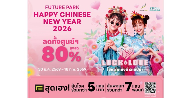 star_borderModal Upgrade Packageฉลองตรุษจีน “โชคลาภมั่งมี รักดีปีม้า” ศูนย์การค้าฟิวเจอร์พาร์คและสเปลล์ เสิร์ฟความปัง HAPPY CHINESE NEW YEAR 2026 ลดทั้งศูนย์การค้าฯ สูงสุด 80% เริ่ม 30 ม.ค. – 18 ก.พ. 6929 ม.ค. 2569 13:53 น.